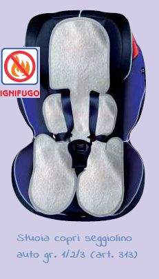 Tutti i modelli di copri seggiolini auto sono ignifughi (escluso dove non specificato) in spugna 100% poliestere.